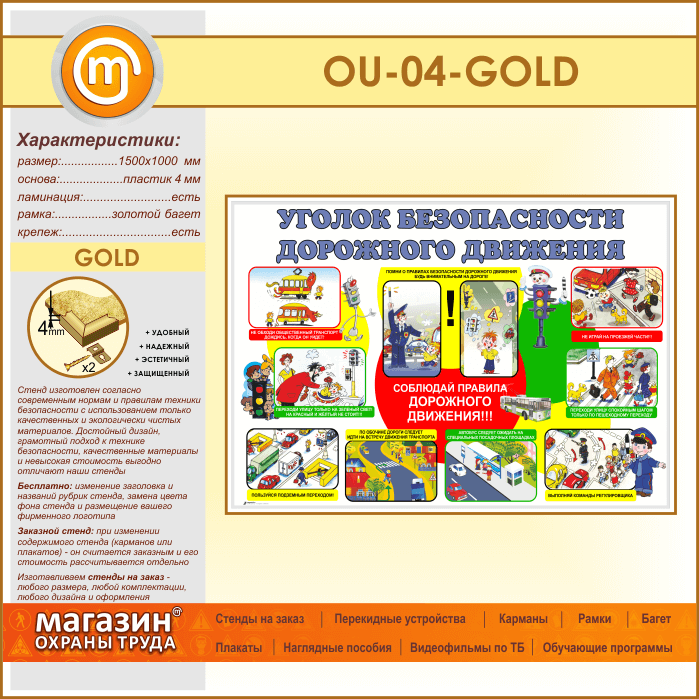 Стенд «Уголок безопасности дорожного движения» (OU-04-GOLD) в Бердске купить