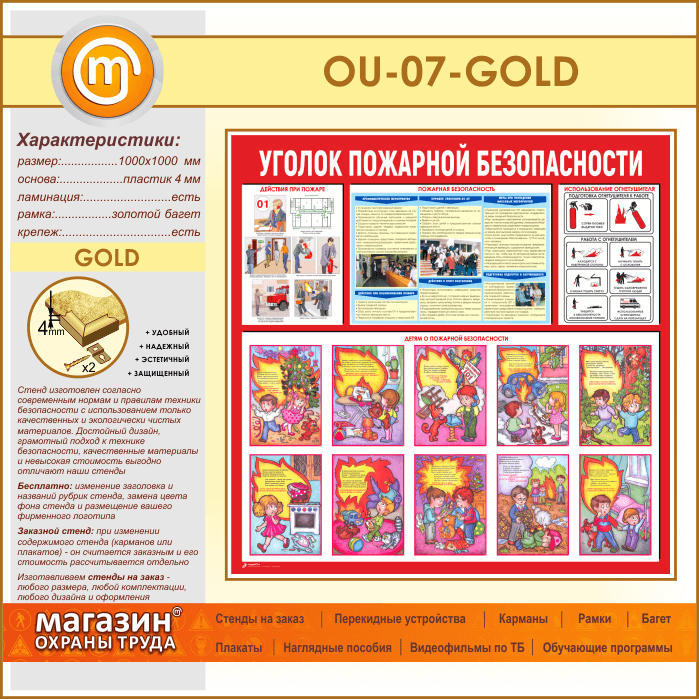 Стенд «Уголок пожарной безопасности» (OU-07-GOLD) в Бердске купить