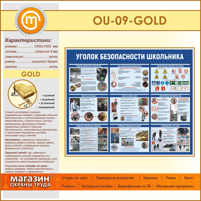 Стенд «Уголок безопасности школьника» (OU-09-GOLD) в Бердске купить