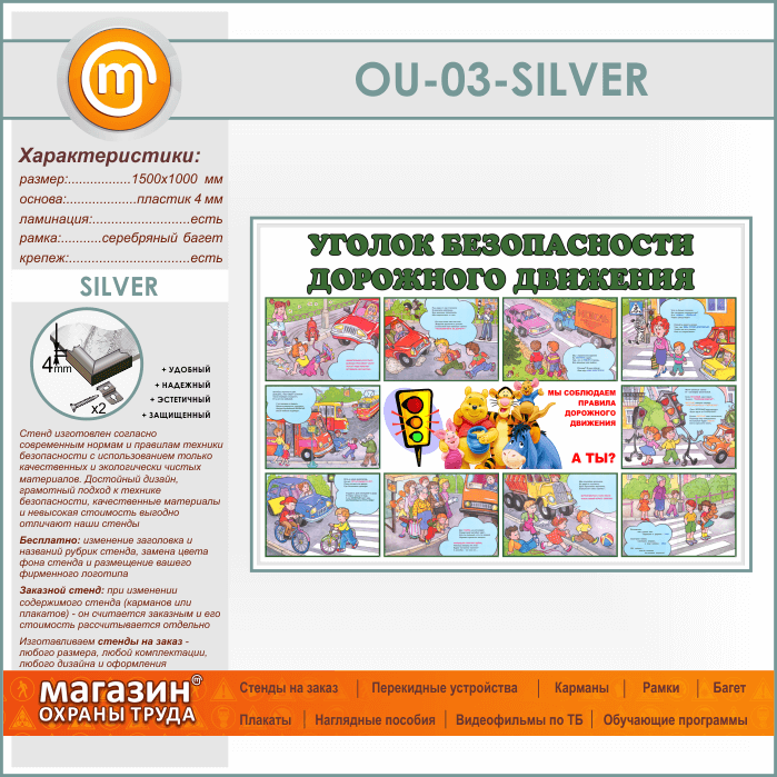 Стенд «Уголок безопасности дорожного движения» (OU-03-SILVER) в Бердске купить