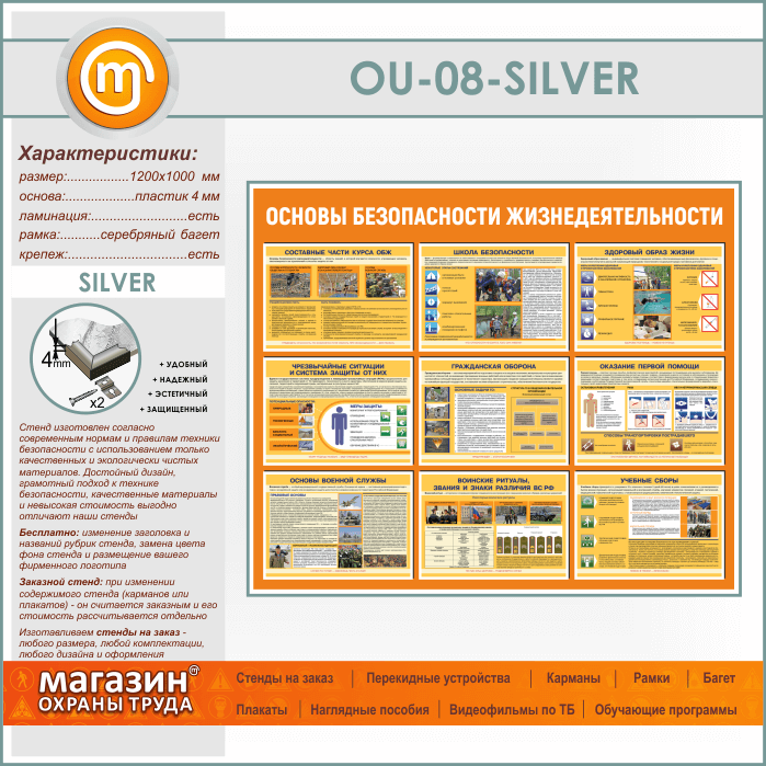 Стенд «Основы безопасности жизнедеятельности» (OU-08-SILVER) в Бердске купить