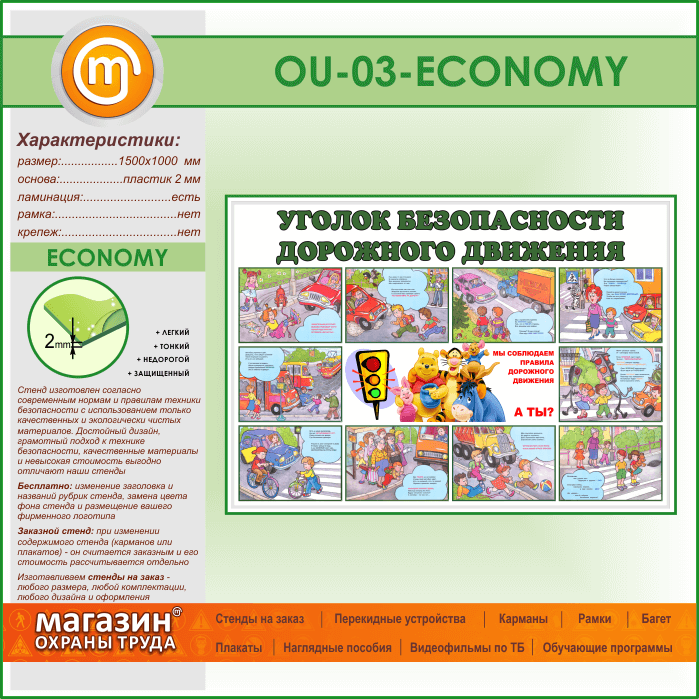Стенд «Уголок безопасности дорожного движения» (OU-03-ECONOMY) в Бердске купить