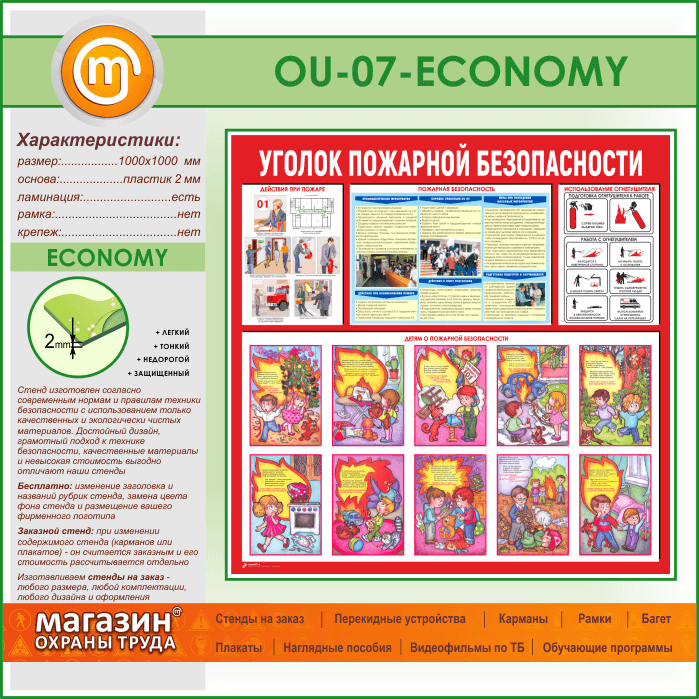 Стенд «Уголок пожарной безопасности» (OU-07-ECONOMY) в Бердске купить