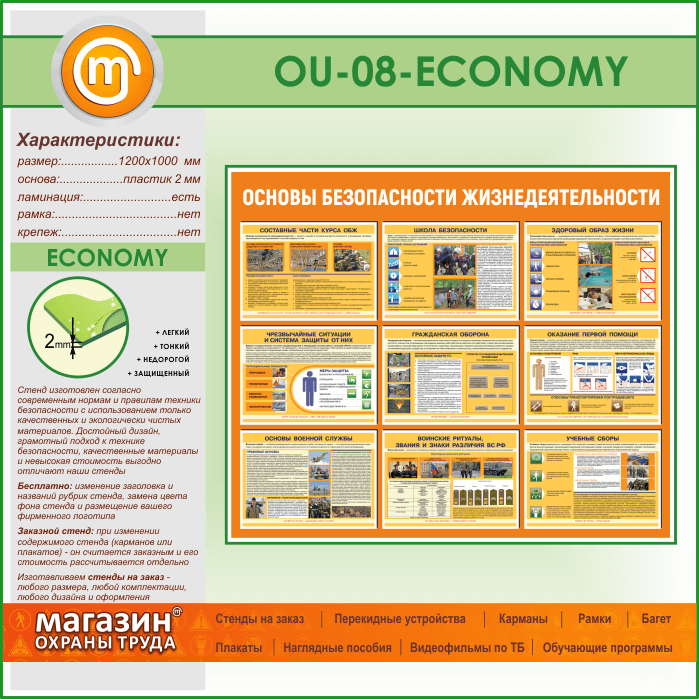 Стенд «Основы безопасности жизнедеятельности» (OU-08-ECONOMY) в Бердске купить