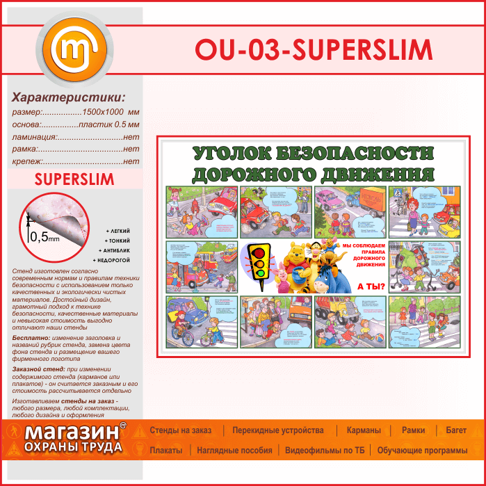 Стенд «Уголок безопасности дорожного движения» (OU-03-SUPERSLIM) в Бердске купить