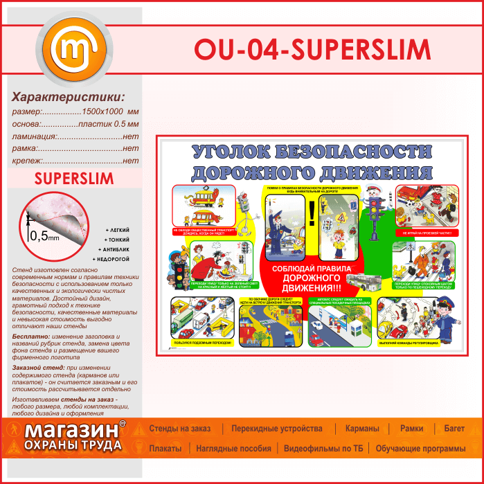 Стенд «Уголок безопасности дорожного движения» (OU-04-SUPERSLIM) в Бердске купить