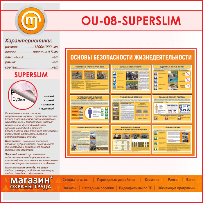 Стенд «Основы безопасности жизнедеятельности» (OU-08-SUPERSLIM) в Бердске купить