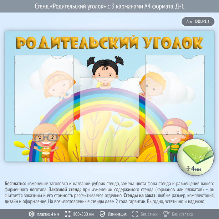Стенд «Родительский уголок» с 3 карманами А4 формата (DOU-1.3) в Бердске купить