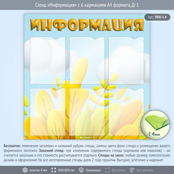 Стенд «Информация» с 6 карманами А4 формата (DOU-1.4) в Бердске купить