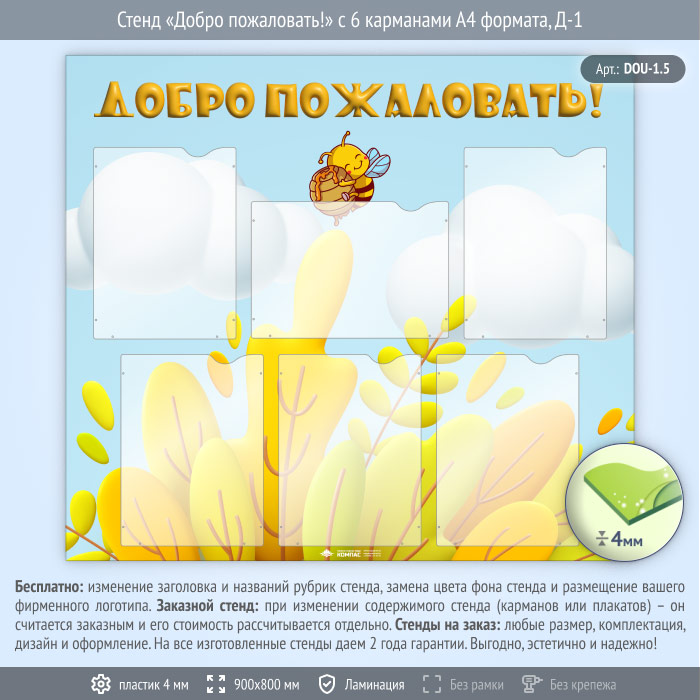 Стенд «Добро пожаловать!» с 6 карманами А4 формата (DOU-1.5) в Бердске купить