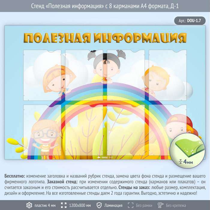 Стенд «Полезная информация» с 8 карманами А4 формата (DOU-1.7) в Бердске купить