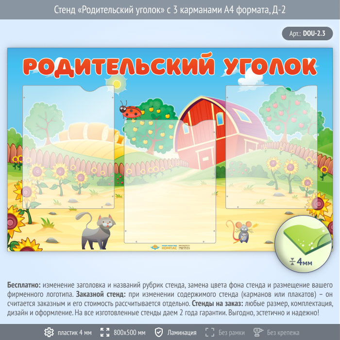 Стенд «Родительский уголок» с 3 карманами А4 формата (DOU-2.3) в Бердске купить