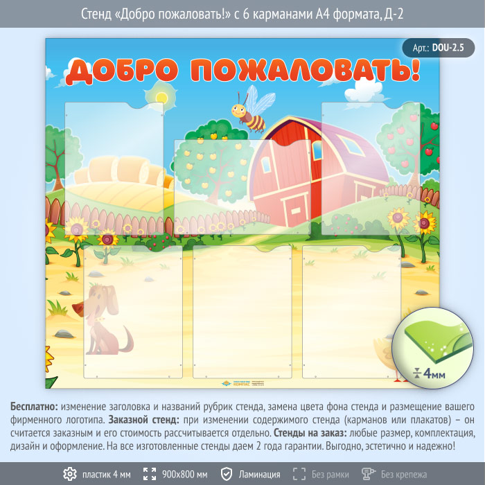 Стенд «Добро пожаловать!» с 6 карманами А4 формата (DOU-2.5) в Бердске купить