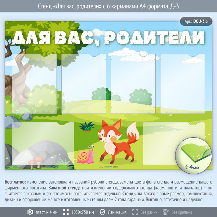 Стенд «Для вас, родители» с 6 карманами А4 формата (DOU-3.6) в Бердске купить