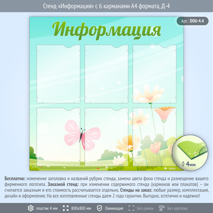 Стенд «Информация» с 6 карманами А4 формата (DOU-4.4) в Бердске купить
