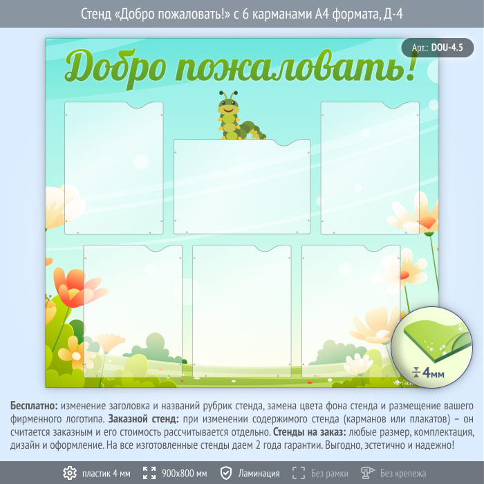 Стенд «Добро пожаловать!» с 6 карманами А4 формата (DOU-4.5) в Бердске купить