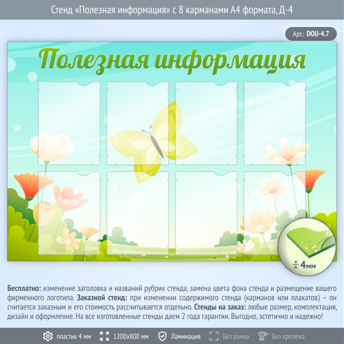 Стенд «Полезная информация» с 8 карманами А4 формата (DOU-4.7) в Бердске купить