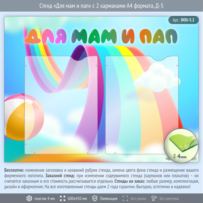 Стенд «Для мам и пап» с 2 карманами А4 формата (DOU-5.2) в Бердске купить