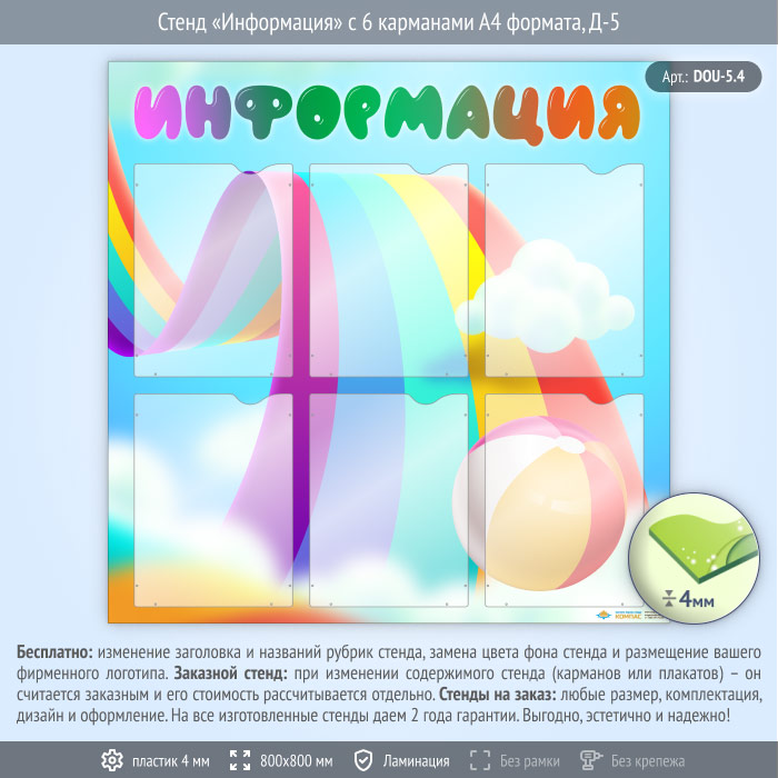 Стенд «Информация» с 6 карманами А4 формата (DOU-5.4) в Бердске купить