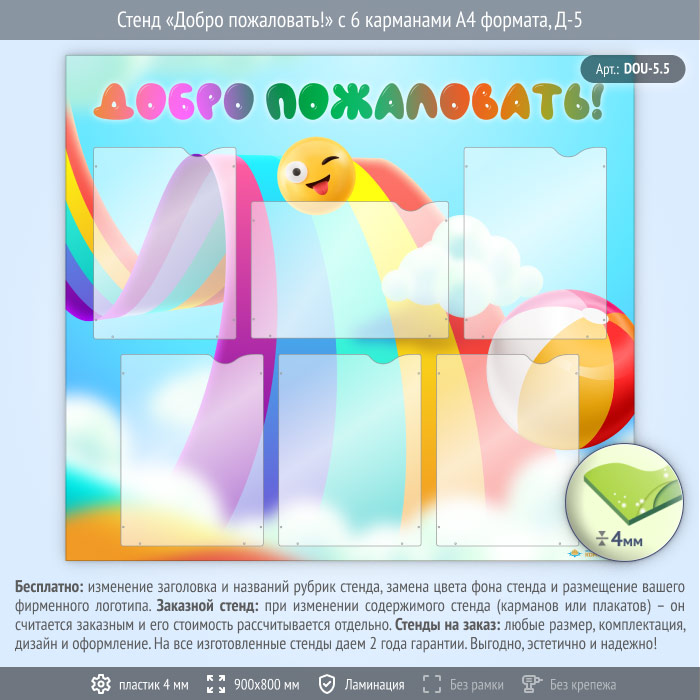 Стенд «Добро пожаловать!» с 6 карманами А4 формата (DOU-5.5) в Бердске купить