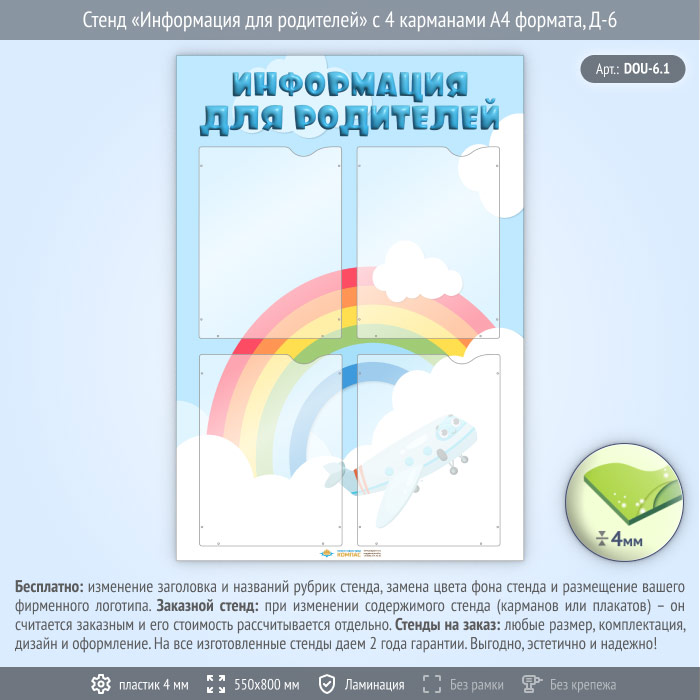 Стенд «Информация для родителей» с 4 карманами А4 формата (DOU-6.1) в Бердске купить