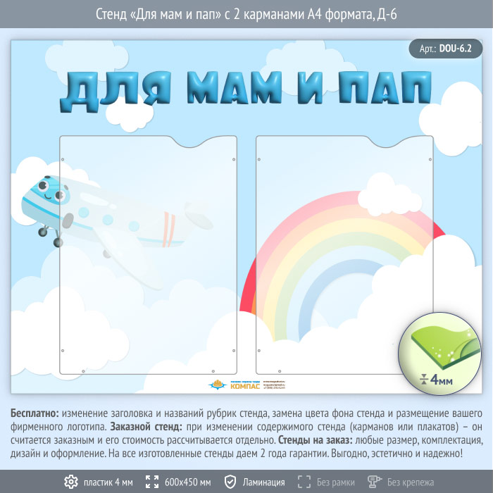 Стенд «Для мам и пап» с 2 карманами А4 формата (DOU-6.2) в Бердске купить