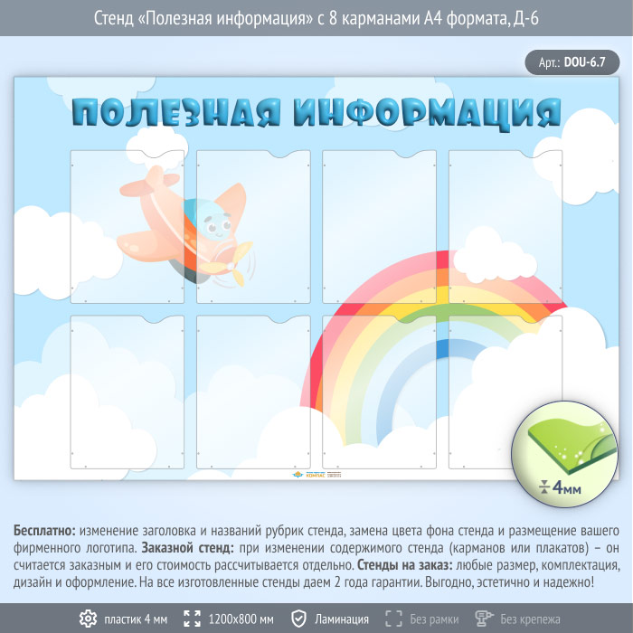 Стенд «Полезная информация» с 8 карманами А4 формата (DOU-6.7) в Бердске купить