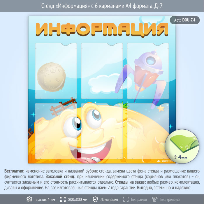 Стенд «Информация» с 6 карманами А4 формата (DOU-7.4) в Бердске купить