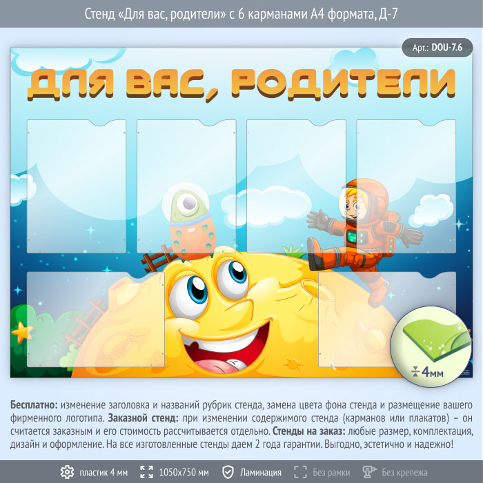 Стенд «Для вас, родители» с 6 карманами А4 формата (DOU-7.6) в Бердске купить
