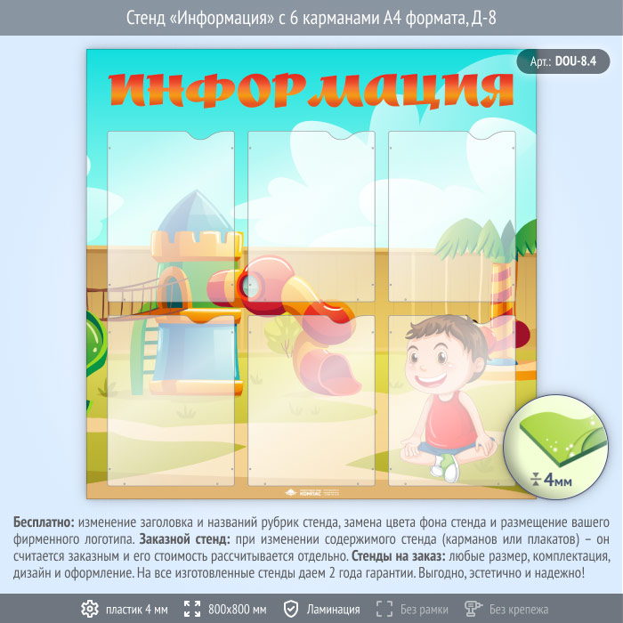 Стенд «Информация» с 6 карманами А4 формата (DOU-8.4) в Бердске купить