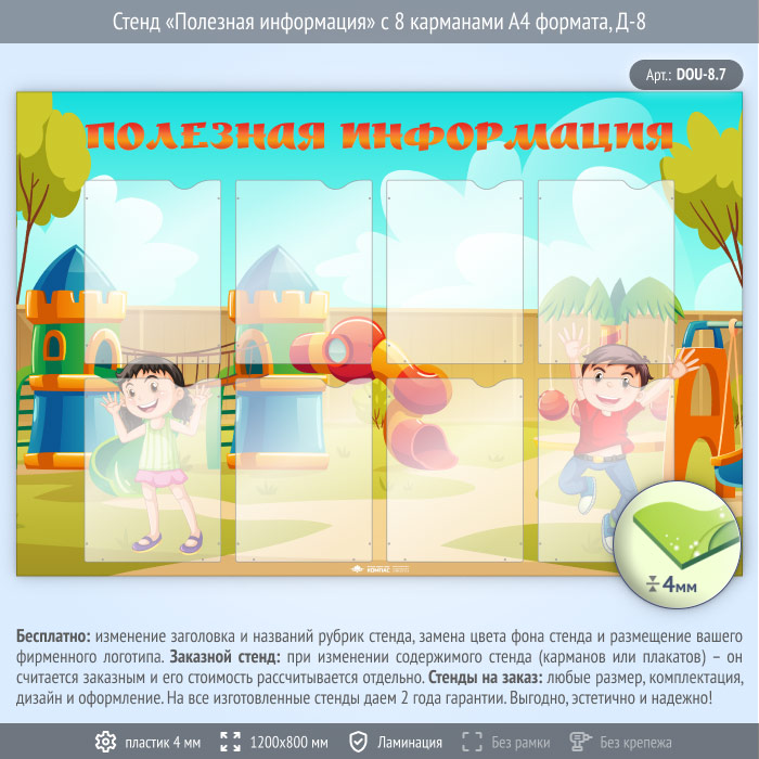 Стенд «Полезная информация» с 8 карманами А4 формата (DOU-8.7) в Бердске купить
