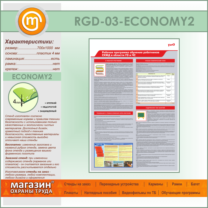 Стенд «Рабочая программа обучения работников СКЖД в области ГО и ЧС» (RGD-03-ECONOMY2) в Бердске купить