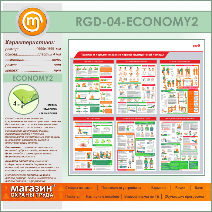 Стенд «Правила и порядок оказания первой медицинской помощи» (RGD-04-ECONOMY2) в Бердске купить