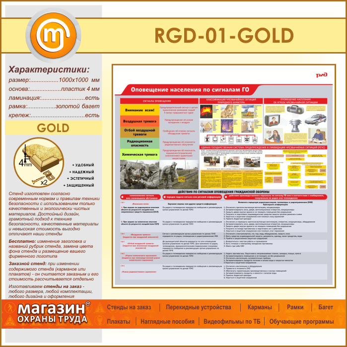 Стенд «Оповещение населения по сигналам ГО» (RGD-01-GOLD) в Бердске купить