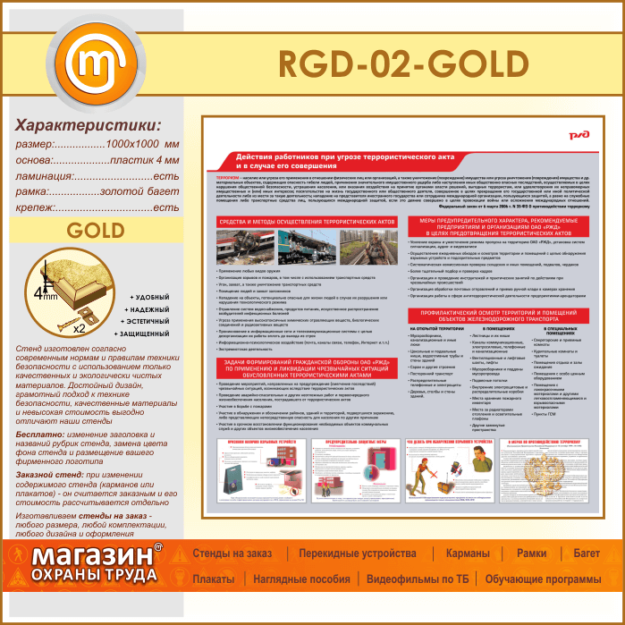 Стенд «Действия работников при угрозе совершения террористического акта и в случае его совершения» (RGD-02-GOLD) в Бердске купить