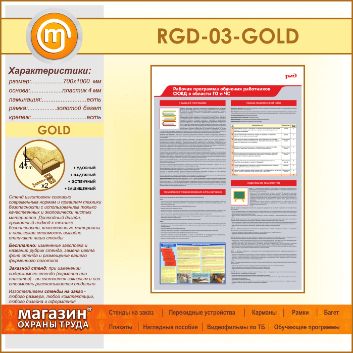 Стенд «Рабочая программа обучения работников СКЖД в области ГО и ЧС» (RGD-03-GOLD) в Бердске купить