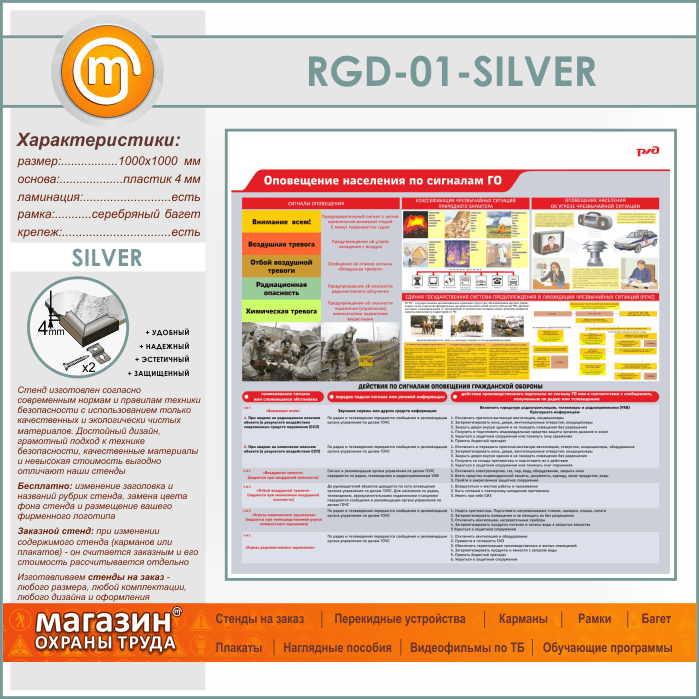 Стенд «Оповещение населения по сигналам ГО» (RGD-01-SILVER) в Бердске купить