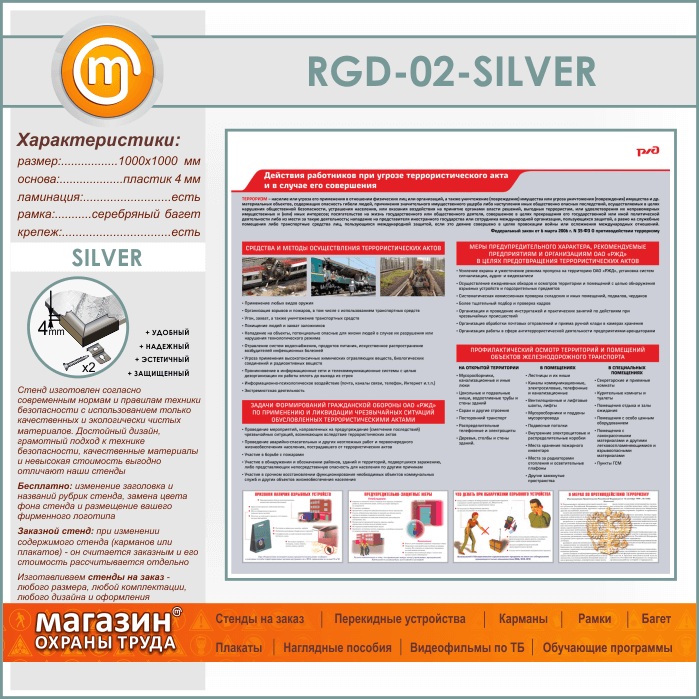 Стенд «Действия работников при угрозе совершения террористического акта и в случае его совершения» (RGD-02-SILVER) в Бердске купить