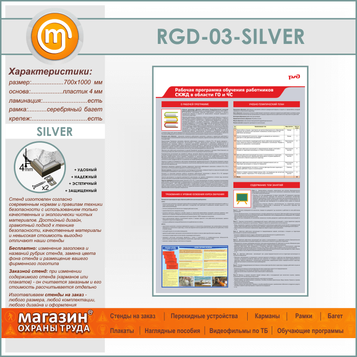Стенд «Рабочая программа обучения работников СКЖД в области ГО и ЧС» (RGD-03-SILVER) в Бердске купить
