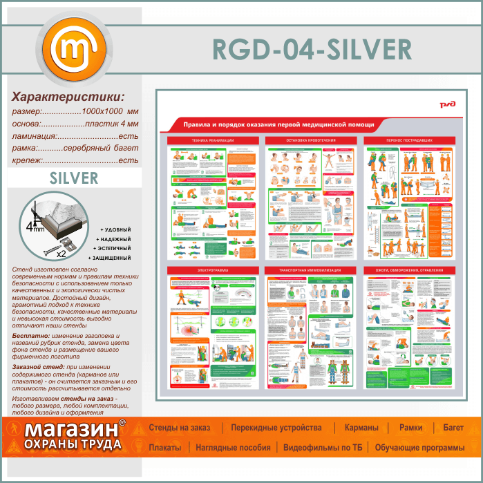 Стенд «Правила и порядок оказания первой медицинской помощи» (RGD-04-SILVER) в Бердске купить