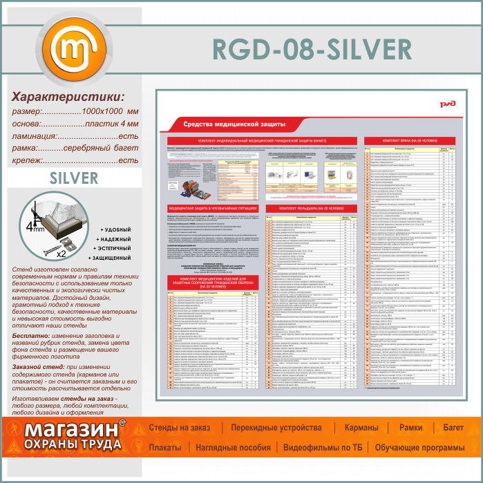 Стенд «Средства медицинской защиты» (RGD-08-SILVER) в Бердске купить