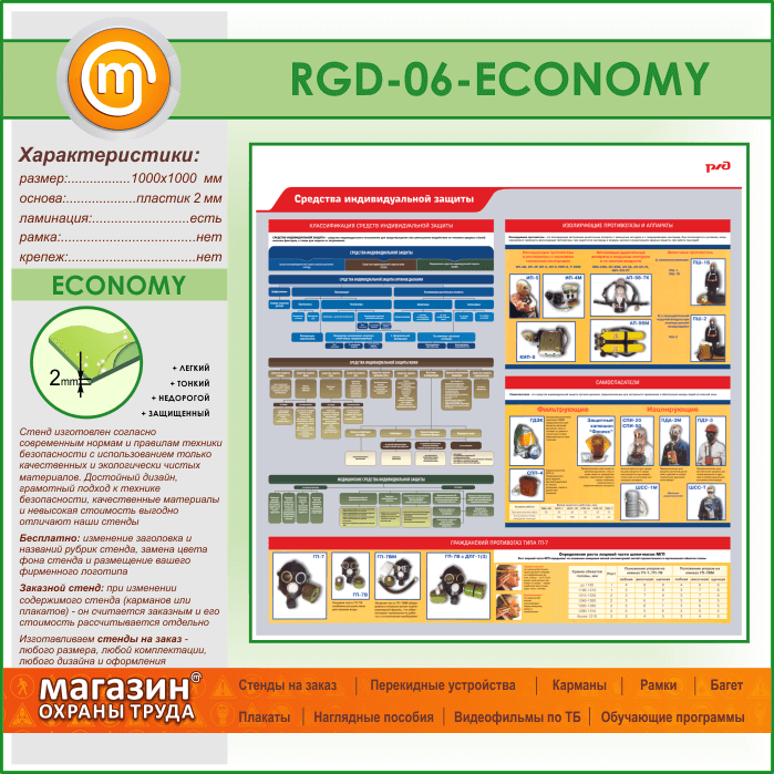 Стенд «Средства индивидуальной защиты» (RGD-06-ECONOMY) в Бердске купить