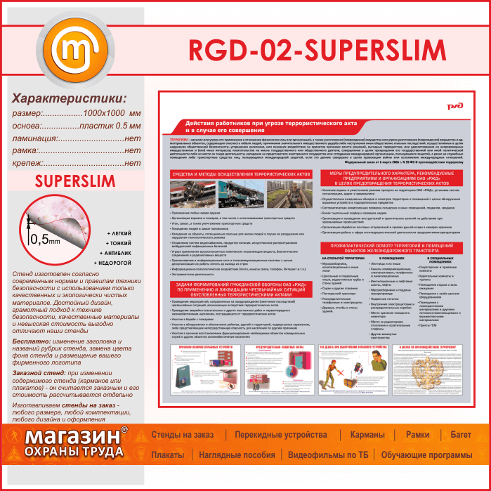 Стенд «Действия работников при угрозе совершения террористического акта и в случае его совершения» (RGD-02-SUPERSLIM) в Бердске купить