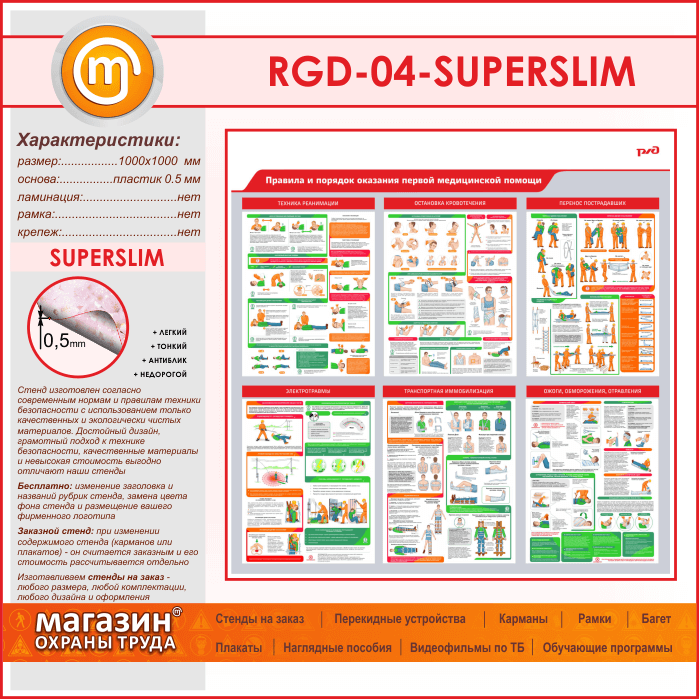 Стенд «Правила и порядок оказания первой медицинской помощи» (RGD-04-SUPERSLIM) в Бердске купить