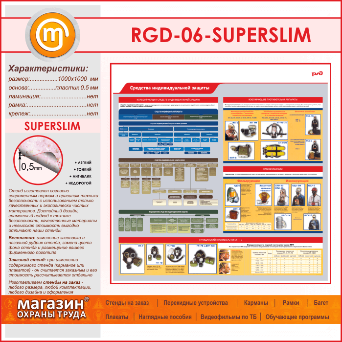 Стенд «Средства индивидуальной защиты» (RGD-06-SUPERSLIM) в Бердске купить