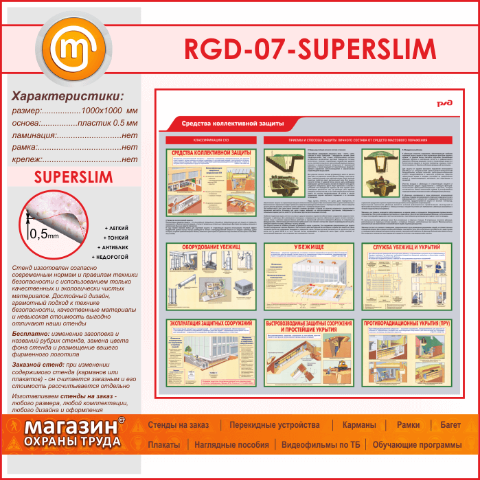 Стенд «Средства коллективной защиты» (RGD-07-SUPERSLIM) в Бердске купить