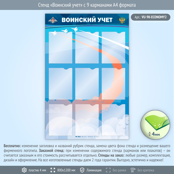 Стенд «Воинский учет» с 9 карманами А4 формата (VU-9K-ECONOMY2) в Бердске купить