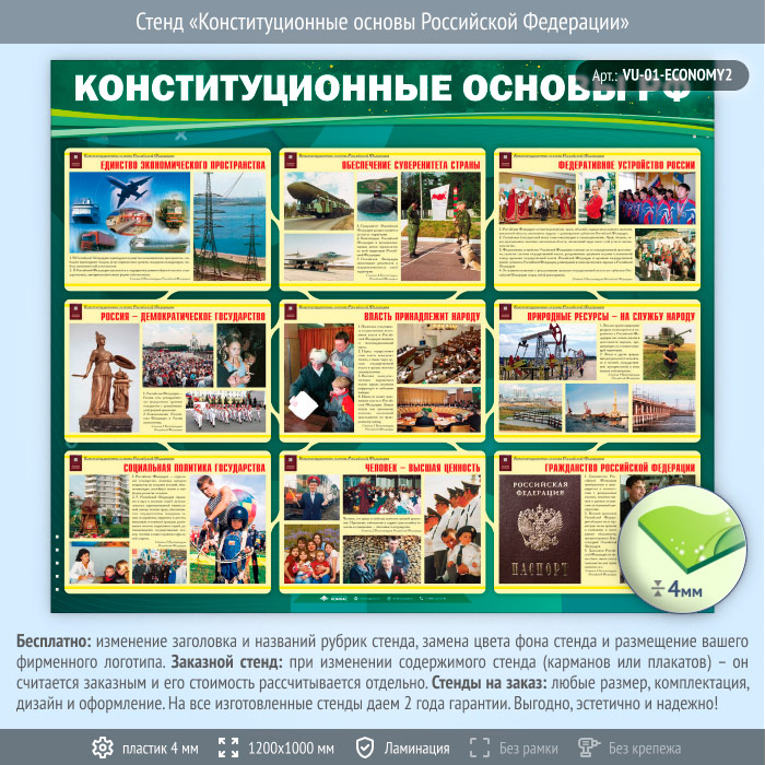 Стенд «Конституционные основы Российской Федерации» (VU-01-ECONOMY2) в Бердске купить