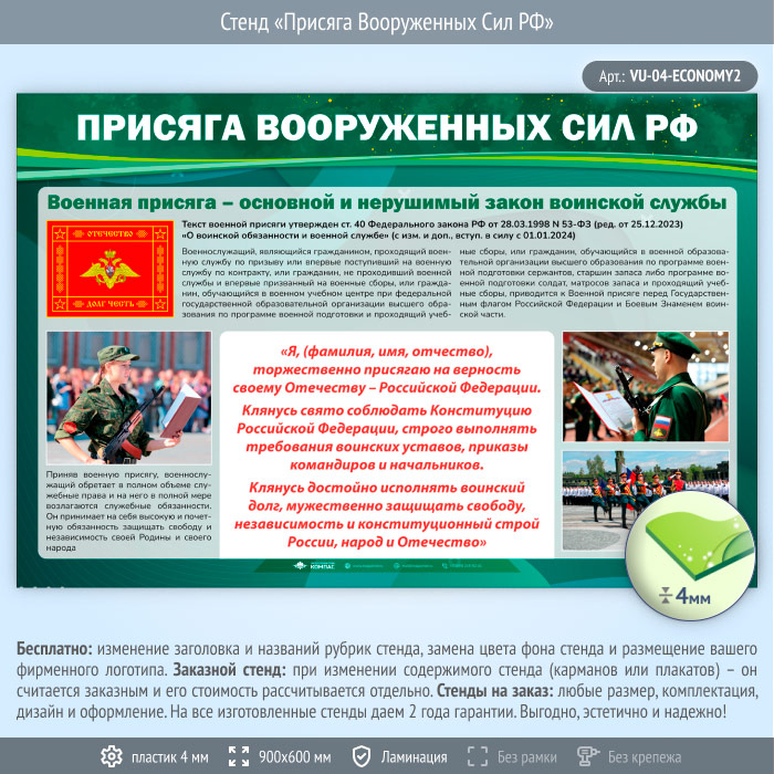 Стенд «Присяга Вооруженных Сил РФ» (VU-04-ECONOMY2) в Бердске купить
