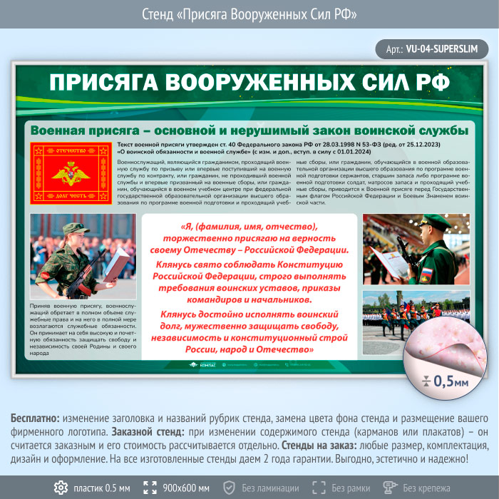 Стенд «Присяга Вооруженных Сил РФ» (VU-04-SUPERSLIM) в Бердске купить